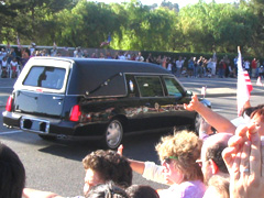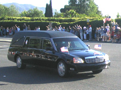 President Ronald ReaganNow when former Governor Ronald Reagan ran for President... that I remember a little better, though as I recall I was a somewhat mindless twenty-something and eventhough I was in college, I was both a bit ignorant and naive -- at the time however, I believed I knew it ALL! In the 1970s, I was registered as a democrat because my brother, a democrat, ran for office in California a couple of times and I wanted to vote for him in the primaries... like most people who run under funded campaigns my brother ran a great "shoe-string" campaign and was well liked locally, but could not hope to beat opponents spending 20 or 30 times as much money as he could...Anyway back on topic -- when Reagan ran for President, our president at the time was one of the nicest and kindest human beings on the planet. His name was Jimmy Carter, and to my knowledge this man was truly incapable of being mean. That virtue, I believe was a characteristic that put the USA in a very dangerous position. I am not saying that Mr. Reagan was any less virtuous, but the charisma and charm that made Ronald Reagan a popular actor were assets that Mr. Carter (as most people) simply did not possess -- also, Reagan's "tough guy" film roles seemed to work to his advantage in diplomacy -- I remember hearing that the Soviet hierarchy watched those films over and over and could not distinguish the affable President from the film characters that he portrayed. You can't really blame Jimmy Carter for many of the events that led to such a problem-plagued presidency. His election was a "reaction" to a period of cynicism and abuse in US politics that literally left the entire country reeling. The crescendo of this sad opera was of course the American "hostages" in Iran, coupled with poor diplomacy with Iran and a completely botched rescue effort -- the United States reached an all time low... Reagan would prove to be the answer to all of these woes. When he became President it signaled a rebirth of spirit in this country. I will end it here, rather than go into a litany of all his accomplishments and the various events which he was part of. I am sure the researchers and talking heads will debate those ad infinitum and the "minutia experts" will continue to dissect. I'll just leave it here and say, thanks Mr. Reagan... Postscript & ClosureWe went to pay our respects today (June 11, 2004) -- my wife, my two daughters and my mom were able to make the trek up to Newbury Park, CA (near Simi Valley) to witness the motorcade and wave goodbye... my father will probably be among the first to greet President Reagan when he reaches his destination, I know he wouldn't want to miss the chance to get another autograph...