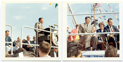 I don't really remember much beyond the fact that my parents were pretty excited about Mr. Reagan running for governor. I remember the appearance in San Pedro gave my dad the chance to use our new "Fotron" camera! He even got an autograph! In retrospect it's somewhat amusing... I mean my dad simply was not the type of person to get "star-struck" -- but apparently Mr. Reagan left quite an impression. I'm sure that my folks had all sorts of reasons for believing that he was the best choice. It didn't seem to affect me one way or the other... but they were happy about it, so I guess that made me happy too -- Oh, did I mention that I was 7... or 8...?